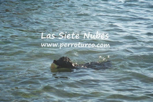 Jade (Bola) hija de Docker y Sira disfrutando de un refrescante baño en Ibiza. Foto y propiedad de Carmen L.